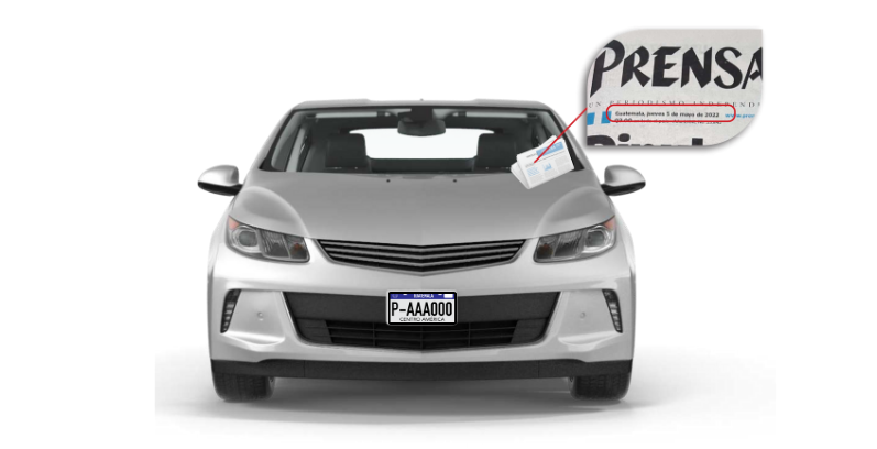 Fotografía del vehículo mostrando un periódico del día para validar la fecha.